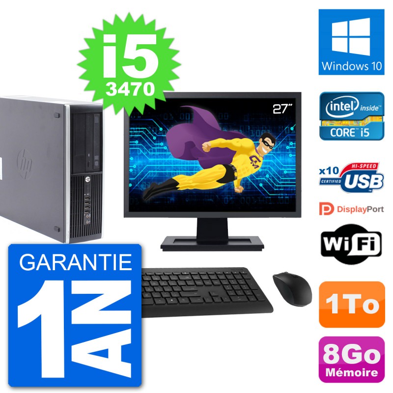 PC HP Compaq Pro 6300 SFF Ecran 27" i5-3470 RAM 8Go Disque 1To Windows 10 Wifi