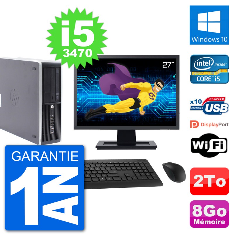 PC HP Compaq Pro 6300 SFF Ecran 27" i5-3470 RAM 8Go Disque 2To Windows 10 Wifi