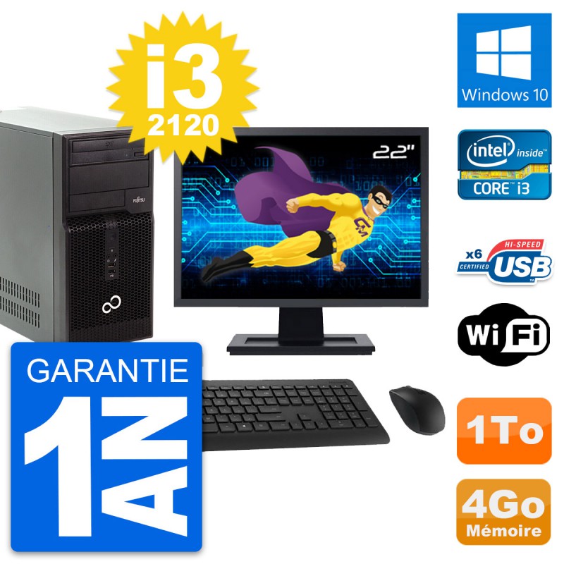 PC Tour Fujitsu P400 Ecran 22" Intel i3-2120 RAM 4Go Disque 1To Windows 10 Wifi