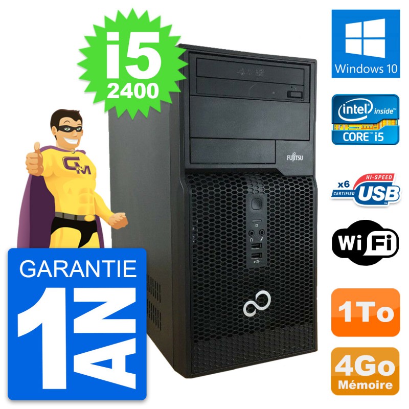 PC Tour Fujitsu P400 - Intel Core i5-2400 3.1 Ghz (6 Mo) - 4 Go DDR3 - Disque Dur 3,5" 1 To - Graveur DVD - Clef Wifi USB - Windows 10 - Garantie 1 an.