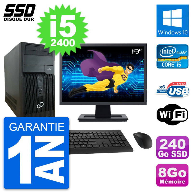 PC Tour Fujitsu P400 Ecran 19" Intel i5-2400 RAM 8Go SSD 240Go Windows 10 Wifi