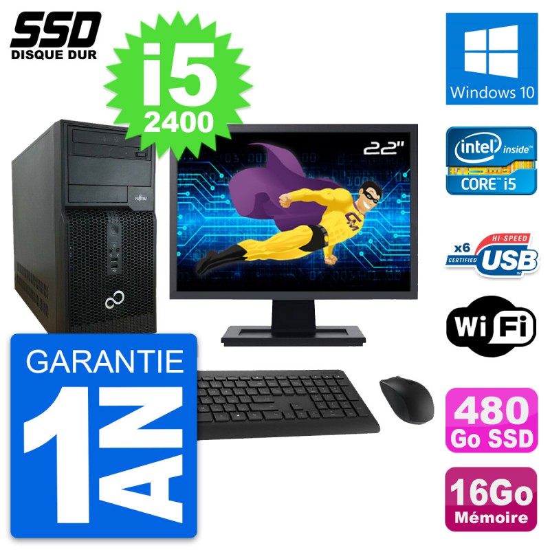 PC Tour Fujitsu P400 Ecran 22" Intel i5-2400 RAM 16Go SSD 480Go Windows 10 Wifi