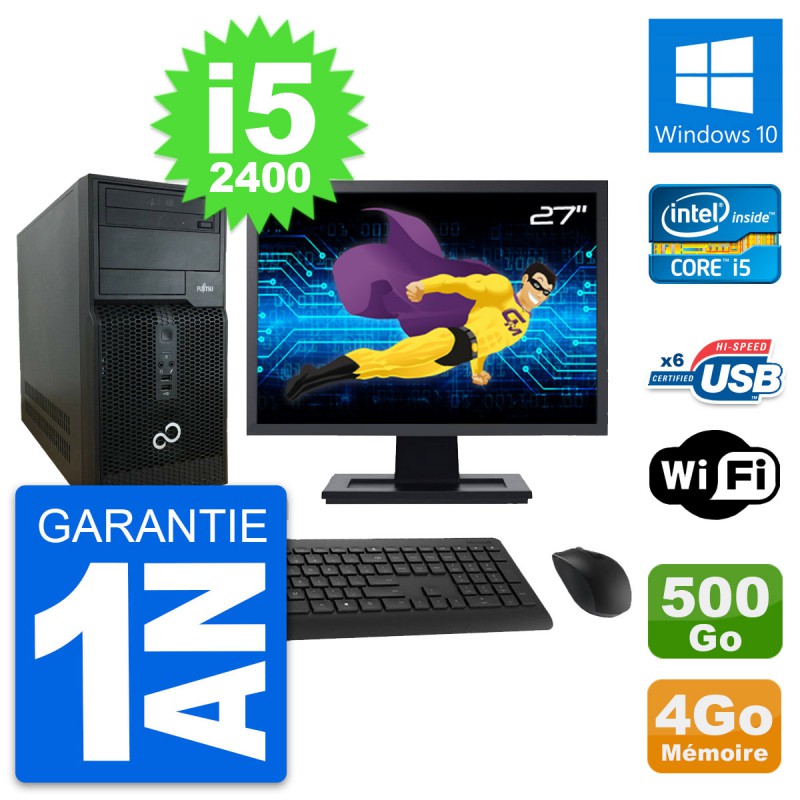 PC Tour Fujitsu P400 Ecran 27" i5-2400 RAM 4Go Disque Dur 500Go Windows 10 Wifi