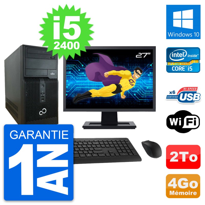 PC Tour Fujitsu P400 Ecran 27" i5-2400 RAM 4Go Disque Dur 2To Windows 10 Wifi