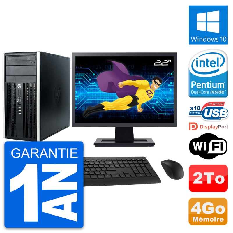 PC HP Pro 6300 CMT (Micro Tour) - Intel Pentium Dual-Core G630 2.7 Ghz (3 Mo) - 4 Go DDR3 - Disque Dur 3,5" 2 To - Graveur DVD - Clef Wifi USB - Windows 10 - Livré avec Ecran 22" + clavier + souris (Marques et modèles variables) - Garantie 1 an.