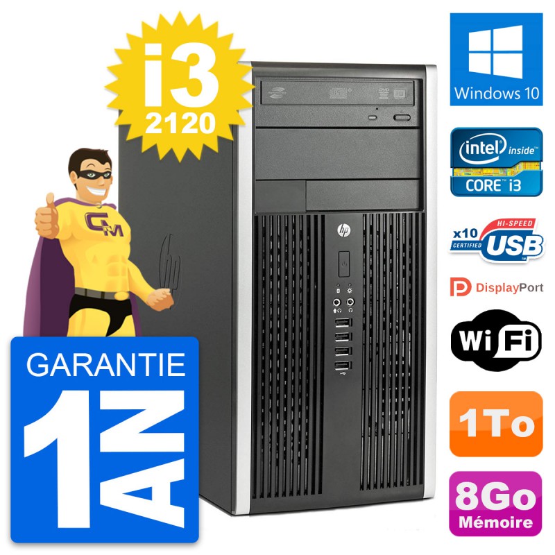 PC Tour HP Compaq Pro 6300 CMT (Micro Tour) - Intel Core i3-2120 3.3 Ghz (3 Mo) - 8 Go DDR3 - Disque Dur 3,5" 1 To - Graveur DVD - Clef Wifi USB - Windows 10 - Garantie 1 an.