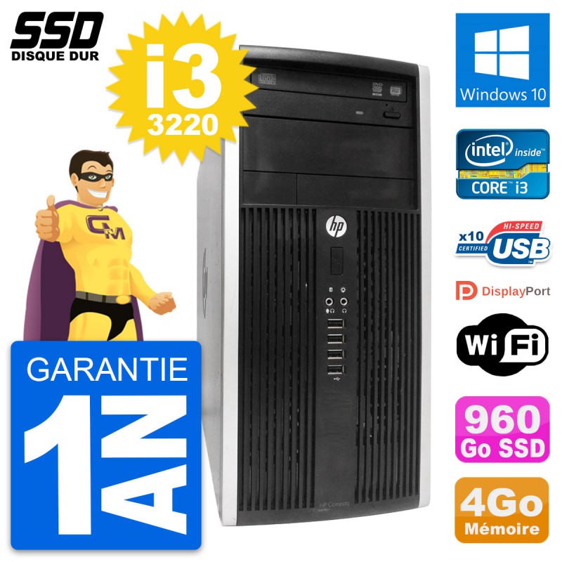 PC Tour HP Compaq Pro 6300 CMT (Micro Tour) - Intel Core i3-3220 3.3 Ghz (3 Mo) - 4 Go DDR3 - Disque Dur SSD 960 Go - Graveur DVD - Clef Wifi USB - Windows 10 - Garantie 1 an.