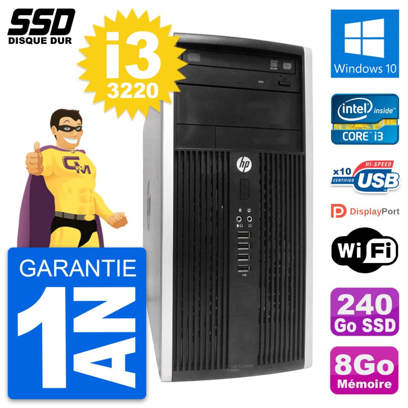 PC Tour HP Compaq Pro 6300 CMT (Micro Tour) - Intel Core i3-3220 3.3 Ghz (3 Mo) - 8 Go DDR3 - Disque Dur SSD 240 Go - Graveur DVD - Clef Wifi USB - Windows 10 - Garantie 1 an.