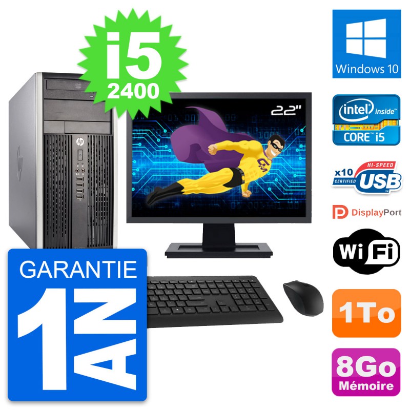 PC Tour HP Pro 6300 CMT Ecran 22" i5-2400 RAM 8Go Disque Dur 1To Windows 10 Wifi