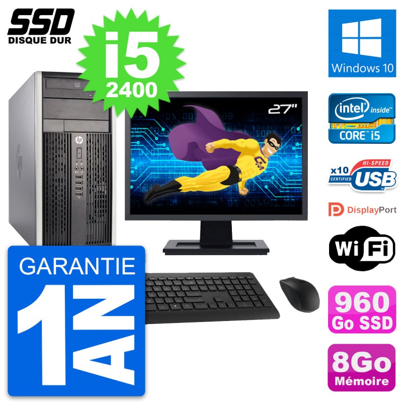 PC Tour HP 6300 CMT Ecran 27" Intel i5-2400 RAM 8Go SSD 960Go Windows 10 Wifi