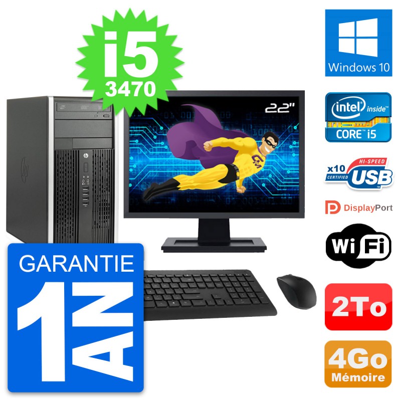 PC Tour HP Pro 6300 CMT Ecran 22" i5-3470 RAM 4Go Disque Dur 2To Windows 10 Wifi