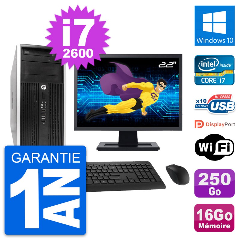 PC Tour HP Pro 6300 CMT Ecran 22" i7-2600 RAM 16Go Disque 250Go Windows 10 Wifi