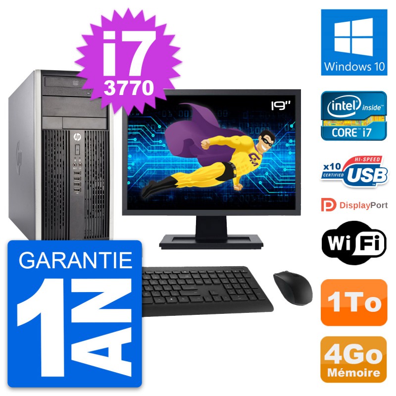 PC Tour HP Pro 6300 CMT Ecran 19" i7-3770 RAM 4Go Disque Dur 1To Windows 10 Wifi