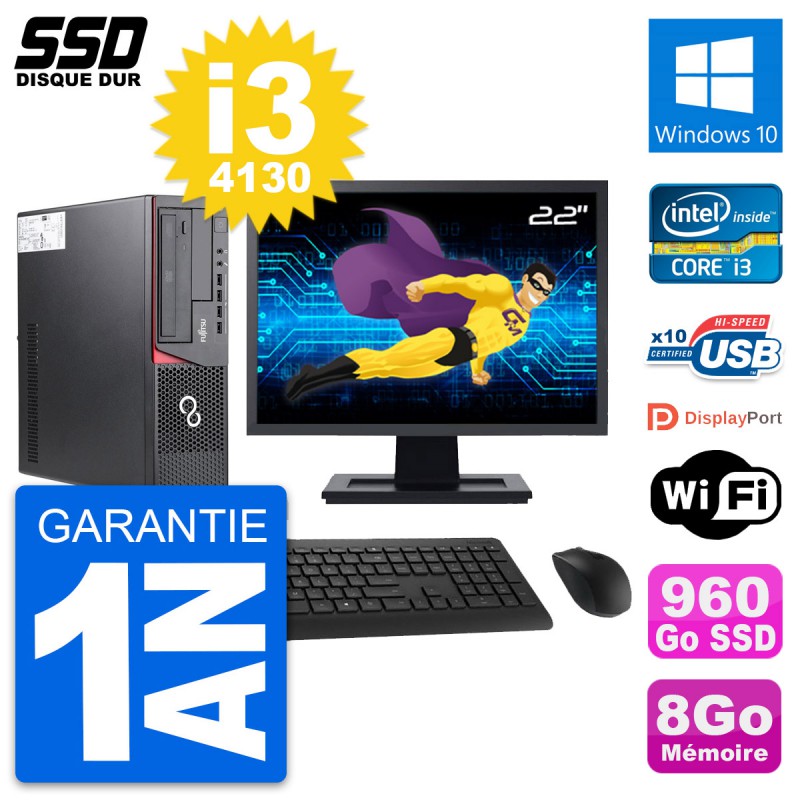 PC Fujitsu E720 E85+ DT Ecran 22" Core i3-4130 RAM 8Go SSD 960Go Windows 10 Wifi