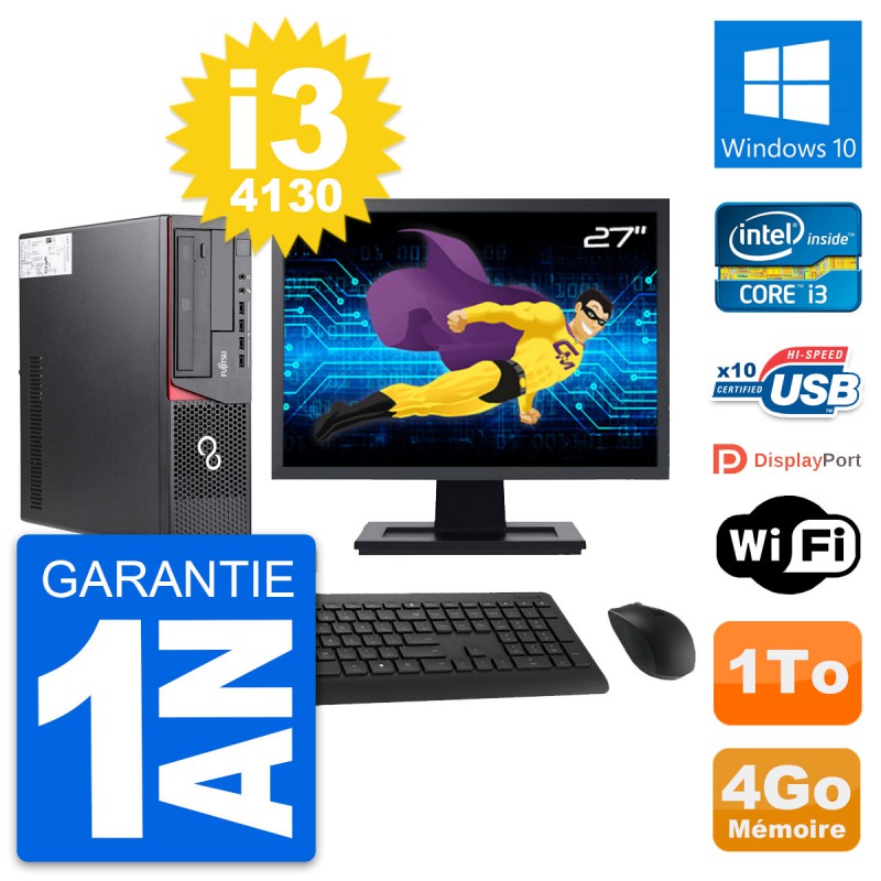 PC Fujitsu E720 DT - Intel Core i3-4130 3.4 Ghz (3 Mo) - 4 Go DDR3 - Disque Dur 3,5" 1 To - Graveur DVD - Clef Wifi USB - Windows 10 - Livré avec Ecran 27" + clavier + souris (Marques et modèles variables) - Garantie 1 an.