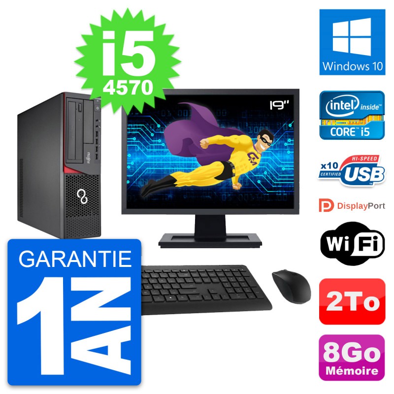 PC Fujitsu E720 DT - Intel Core i5-4570 3.2 Ghz (6 Mo) - 8 Go DDR3 - Disque Dur 3,5" 2 To - Graveur DVD - Clef Wifi USB - Windows 10 - Livré avec Ecran 19" + clavier + souris (Marques et modèles variables) - Garantie 1 an.