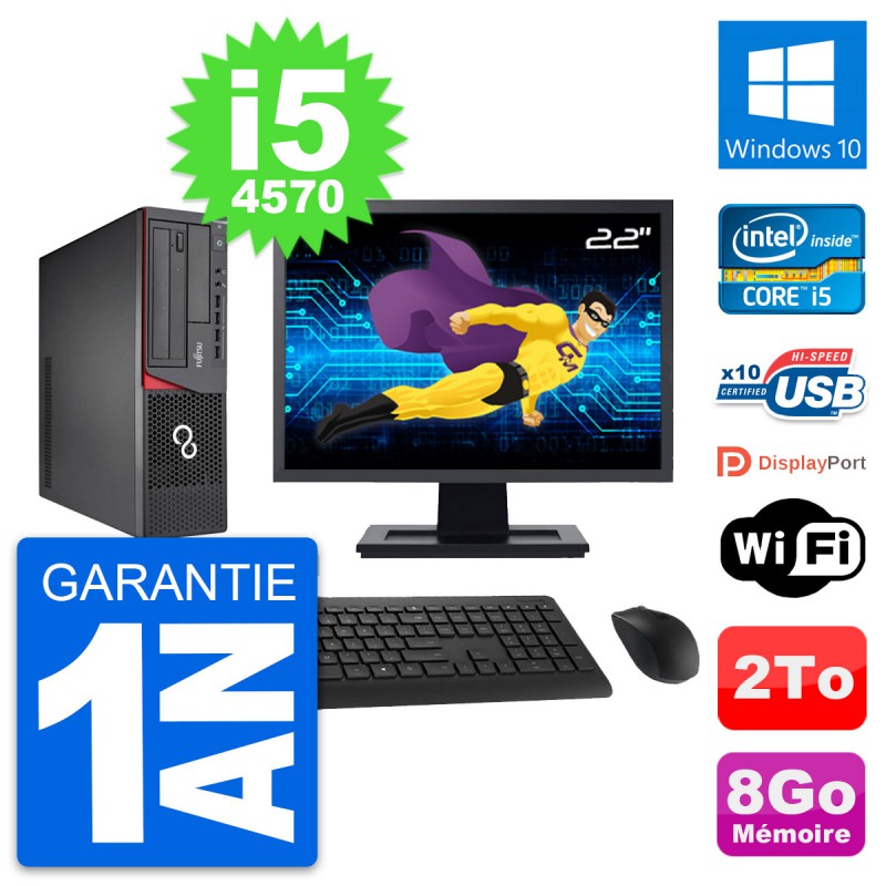 PC Fujitsu E720 DT - Intel Core i5-4570 3.2 Ghz (6 Mo) - 8 Go DDR3 - Disque Dur 3,5" 2 To - Graveur DVD - Clef Wifi USB - Windows 10 - Livré avec Ecran 22" + clavier + souris (Marques et modèles variables) - Garantie 1 an.