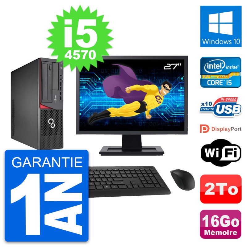PC Fujitsu E720 DT - Intel Core i5-4570 3.2 Ghz (6 Mo) - 16 Go DDR3 - Disque Dur 3,5" 2 To - Graveur DVD - Clef Wifi USB - Windows 10 - Livré avec Ecran 27" + clavier + souris (Marques et modèles variables) - Garantie 1 an.