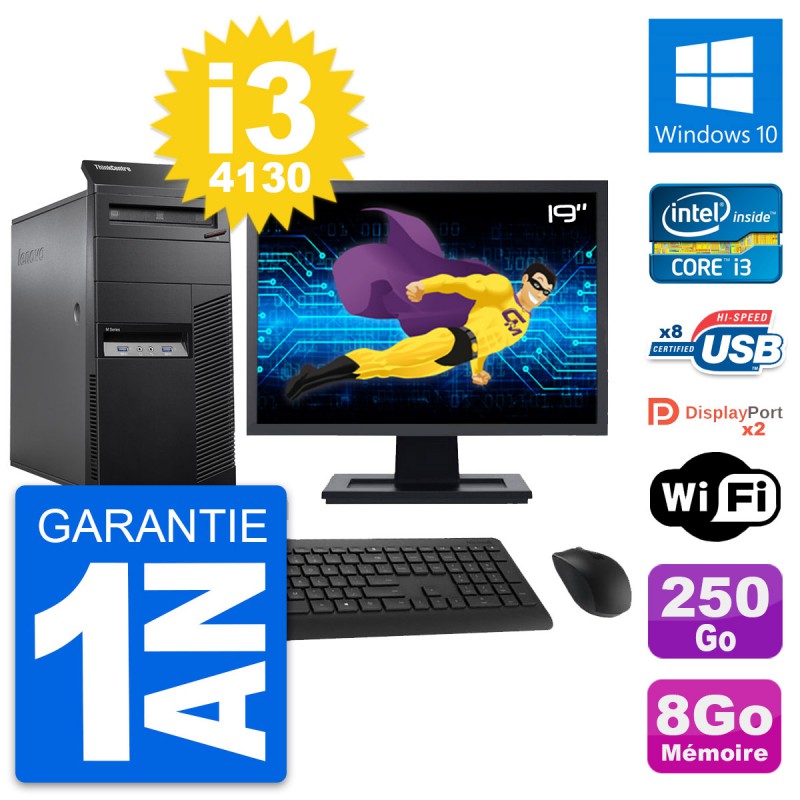 PC Tour Lenovo M83 Ecran 19" Intel i3-4130 RAM 8Go Disque 250Go Windows 10 Wifi