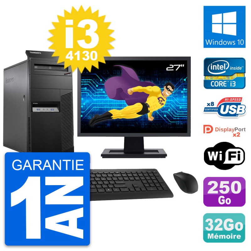 PC Tour Lenovo M83 Ecran 27" Intel i3-4130 RAM 32Go Disque 250Go Windows 10 Wifi