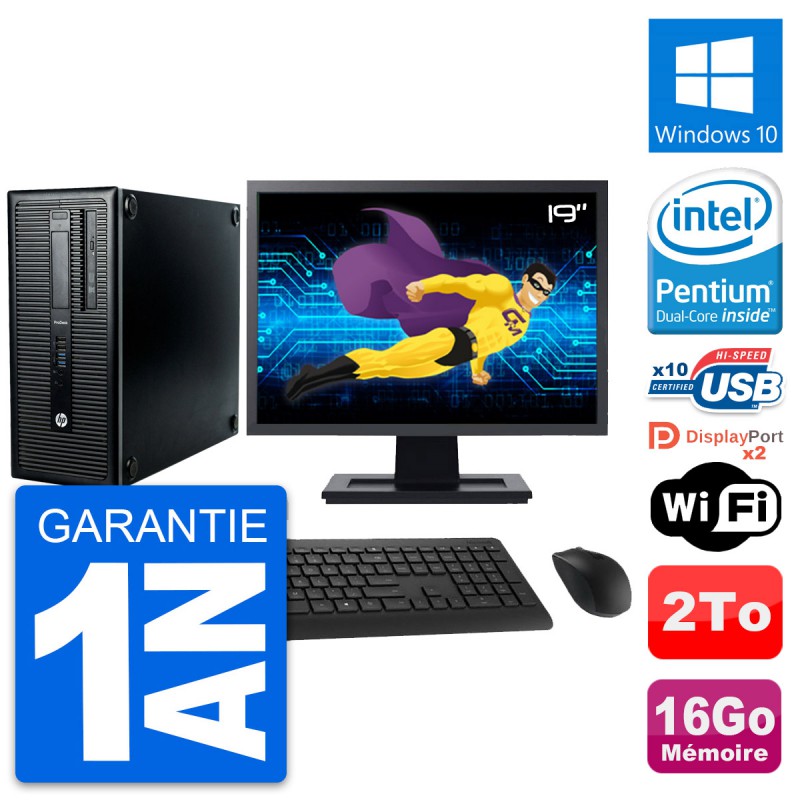 PC Tour HP ProDesk 600 G1 Ecran 19" G3220 RAM 16Go Disque 2To Windows 10 Wifi