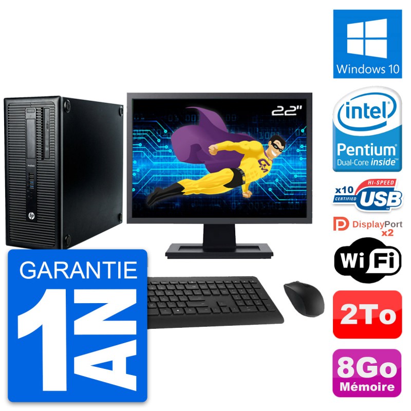 PC Tour HP ProDesk 600 G1 - Intel Pentium G3220 3.0 Ghz (3 Mo) - 8 Go DDR3 - Disque Dur 3,5" 2 To - Graveur DVD - Clef Wifi USB - Windows 10 - Livré avec Ecran 22" + clavier + souris (Marques et modèles variables) - Garantie 1 an.