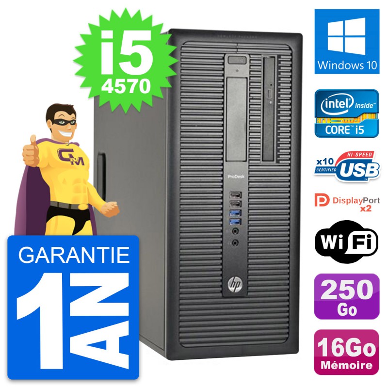 PC Tour HP ProDesk 600 G1 - Intel Core i5-4570 3.2 Ghz (6 Mo) - 16 Go DDR3 - Disque Dur 3,5" 250 Go - Graveur DVD - Clef Wifi USB - Windows 10 - Garantie 1 an.