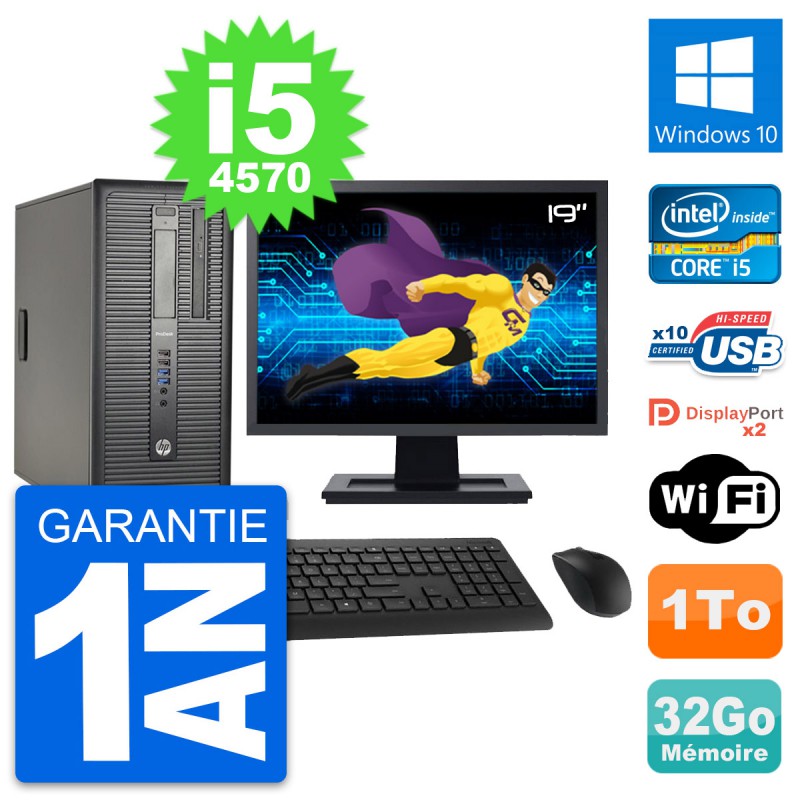 PC Tour HP ProDesk 600 G1 Ecran 19" i5-4570 RAM 32Go Disque 1To Windows 10 Wifi