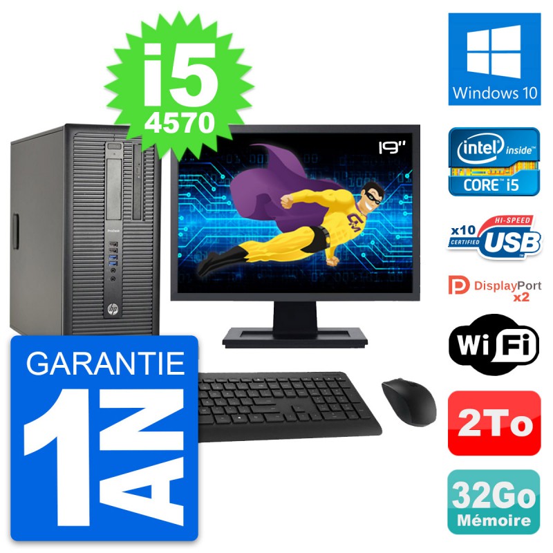 PC Tour HP ProDesk 600 G1 Ecran 19" i5-4570 RAM 32Go Disque 2To Windows 10 Wifi