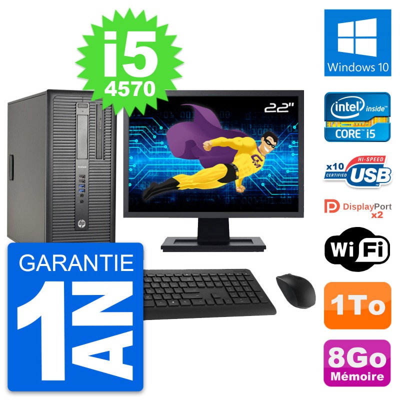 PC Tour HP ProDesk 600 G1 Ecran 22" i5-4570 RAM 8Go Disque 1To Windows 10 Wifi