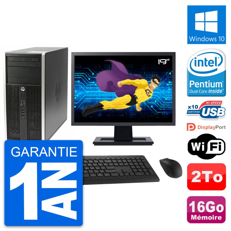 PC HP Pro 6200 CMT (Micro Tour) - Intel Pentium Dual-Core G630 2.7 Ghz (3 Mo) - 16 Go DDR3 - Disque Dur 3,5" 2 To - Graveur DVD - Clef Wifi USB - Windows 10 - Livré avec Ecran 19" + clavier + souris (Marques et modèles variables) - Garantie 1 an.