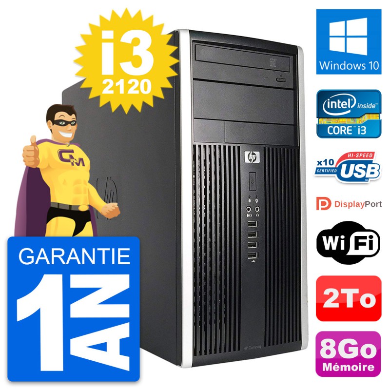 PC Tour HP Compaq Pro 6200 CMT (Micro Tour) - Intel Core i3-2120 3.3 Ghz (3 Mo) - 8 Go DDR3 - Disque Dur 3,5" 2 To - Graveur DVD - Clef Wifi USB - Windows 10 - Garantie 1 an.