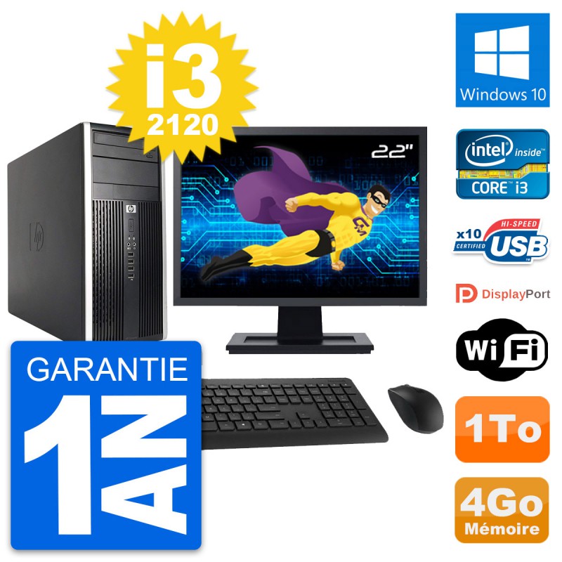 PC HP Pro 6200 CMT (Micro Tour) - Intel Core i3-2120 3.3 Ghz (3 Mo) - 4 Go DDR3 - Disque Dur 3,5" 1 To - Graveur DVD - Clef Wifi USB - Windows 10 - Livré avec Ecran 22" + clavier + souris (Marques et modèles variables) - Garantie 1 an.
