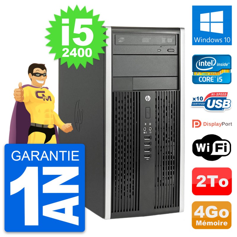 PC Tour HP Compaq Pro 6200 CMT Intel i5-2400 RAM 4Go Disque 2To Windows 10 Wifi