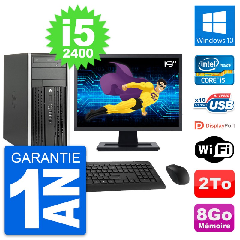 PC HP Pro 6200 CMT (Micro Tour) - Intel Core i5-2400 3.1 Ghz (6 Mo) - 8 Go DDR3 - Disque Dur 3,5" 2 To - Graveur DVD - Clef Wifi USB - Windows 10 - Livré avec Ecran 19" + clavier + souris (Marques et modèles variables) - Garantie 1 an.