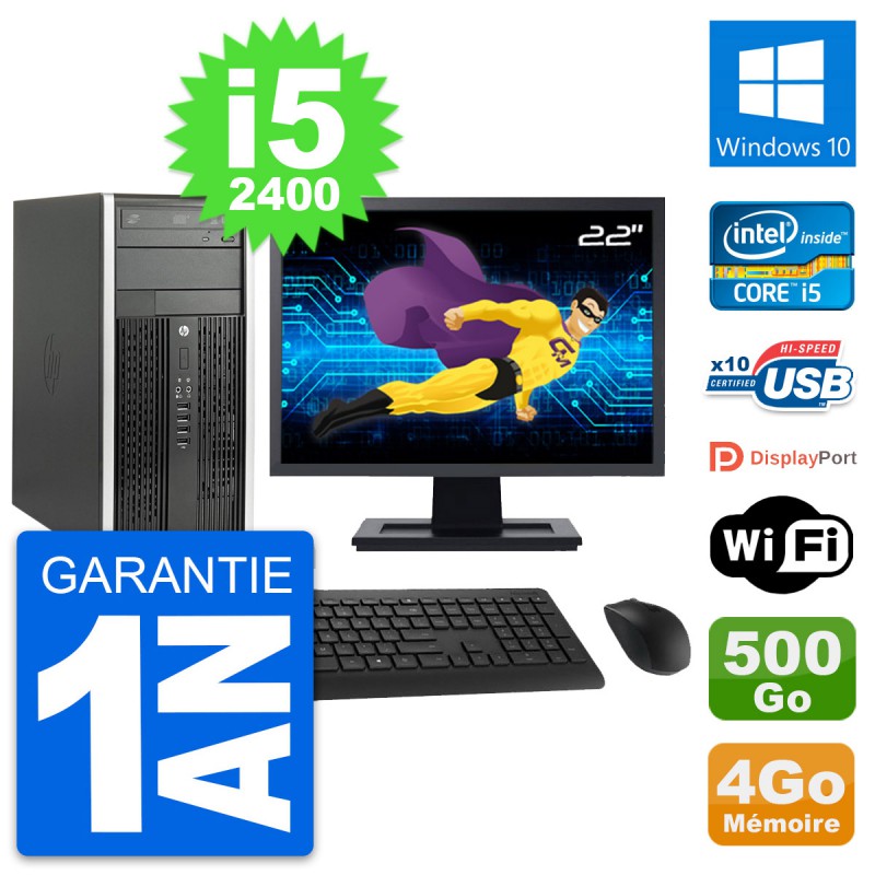 PC HP Pro 6200 CMT (Micro Tour) - Intel Core i5-2400 3.1 Ghz (6 Mo) - 4 Go DDR3 - Disque Dur 3,5" 500 Go - Graveur DVD - Clef Wifi USB - Windows 10 - Livré avec Ecran 22" + clavier + souris (Marques et modèles variables) - Garantie 1 an.