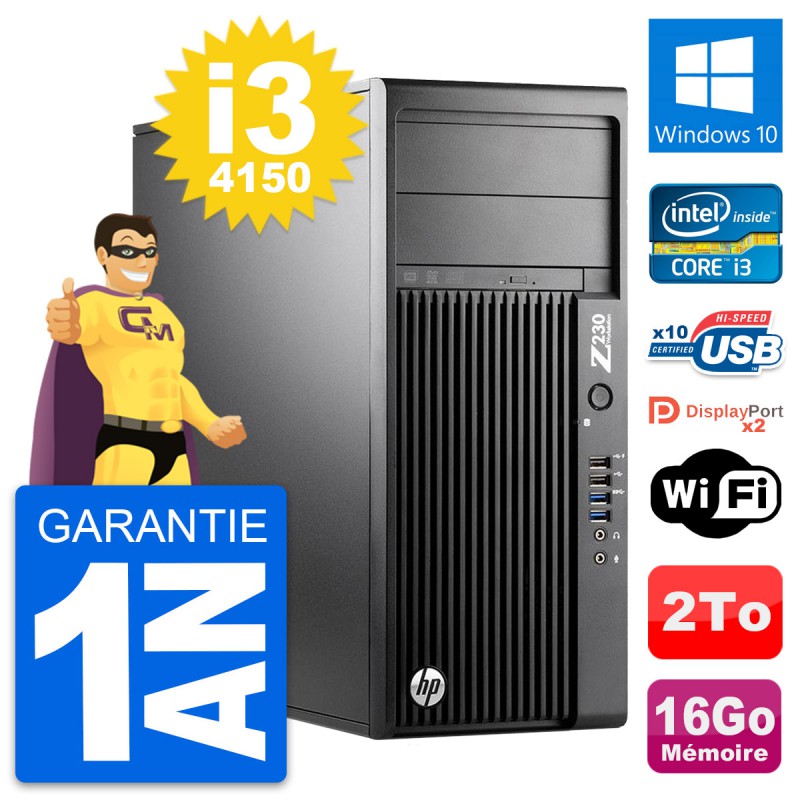 PC Tour HP WorkStation Z230 - Intel Core i3-4150 3.5 Ghz (3 Mo) - 16 Go DDR3 - Disque Dur 3,5" 2 To - Graveur DVD - Clef Wifi USB - Windows 10 - Garantie 1 an.