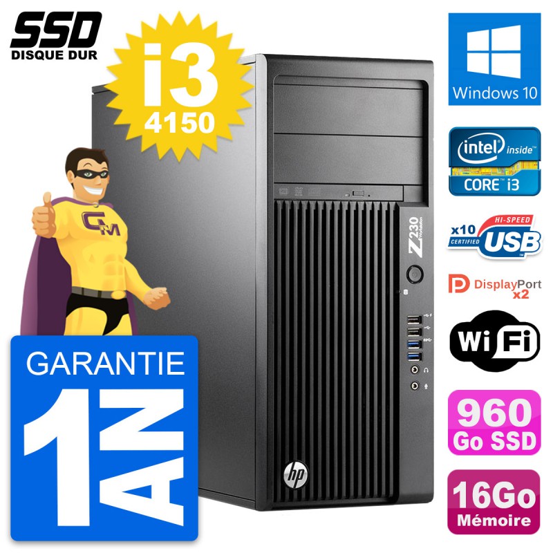 PC Tour HP WorkStation Z230 - Intel Core i3-4150 3.5 Ghz (3 Mo) - 16 Go DDR3 - Disque Dur SSD 960 Go - Graveur DVD - Clef Wifi USB - Windows 10 - Garantie 1 an.
