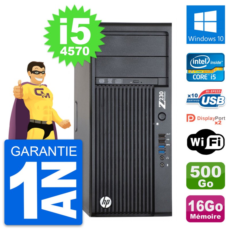 PC Tour HP WorkStation Z230 - Intel Core i5-4570 3.2 Ghz (6 Mo) - 16 Go DDR3 - Disque Dur 3,5" 500 Go - Graveur DVD - Clef Wifi USB - Windows 10 - Garantie 1 an.
