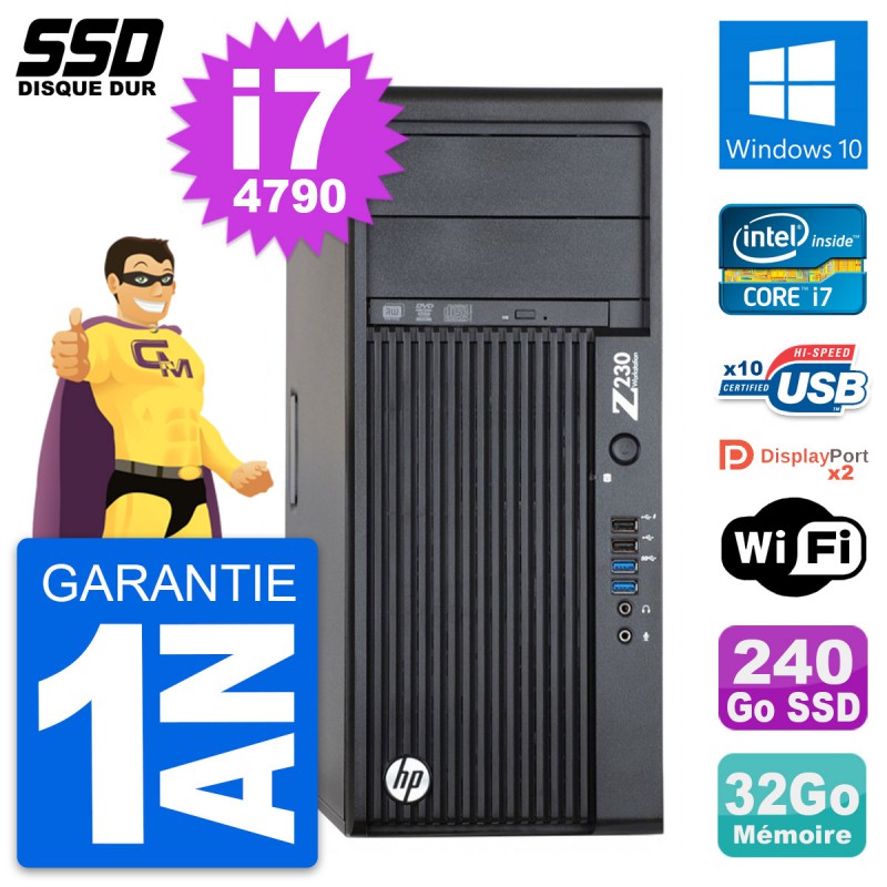 PC Tour HP WorkStation Z230 Core i7-4790 RAM 32Go SSD 240Go Windows 10 Wifi