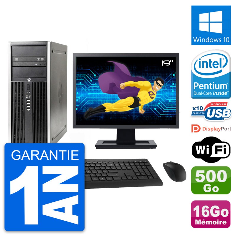 PC Tour HP 8300 Elite - Intel Pentium Dual-Core G630 2.7 Ghz (3 Mo) - 16 Go DDR3 - Disque Dur 3,5" 500 Go - Graveur DVD - Clef Wifi USB - Windows 10 - Livré avec Ecran 19" + clavier + souris (Marques et modèles variables) - Garantie 1 an.
