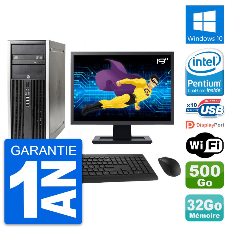 PC Tour HP 8300 Elite - Intel Pentium Dual-Core G630 2.7 Ghz (3 Mo) - 32 Go DDR3 - Disque Dur 3,5" 500 Go - Graveur DVD - Clef Wifi USB - Windows 10 - Livré avec Ecran 19" + clavier + souris (Marques et modèles variables) - Garantie 1 an.