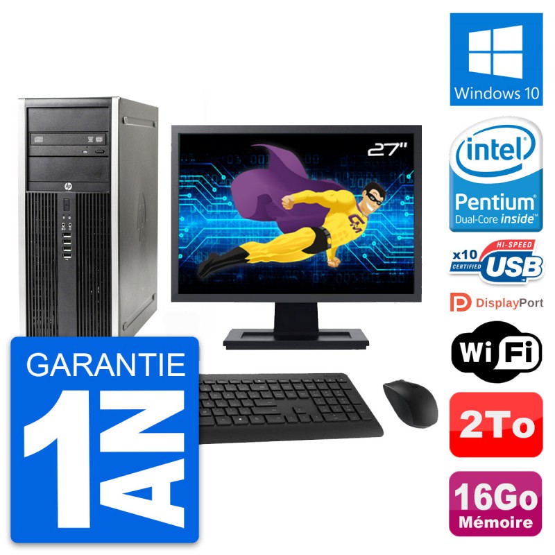 PC Tour HP 8300 Elite - Intel Pentium Dual-Core G630 2.7 Ghz (3 Mo) - 16 Go DDR3 - Disque Dur 3,5" 2 To - Graveur DVD - Clef Wifi USB - Windows 10 - Livré avec Ecran 27" + clavier + souris (Marques et modèles variables) - Garantie 1 an.