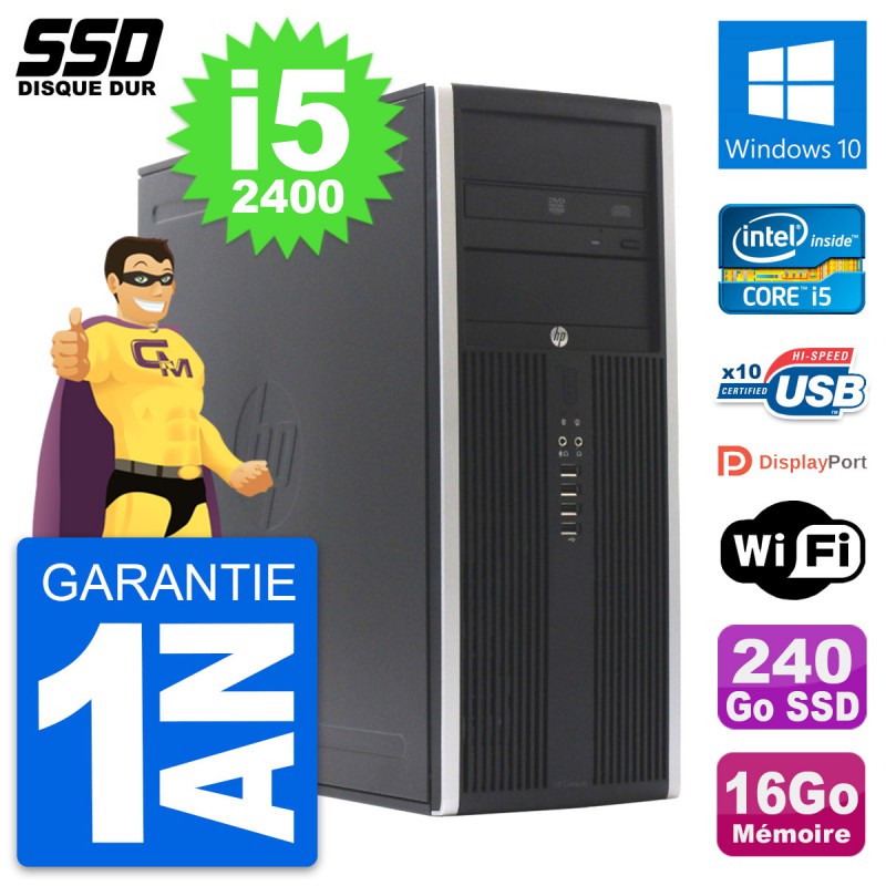 PC Tour HP Elite 8300 Intel Core i5-2400 RAM 16Go SSD 240Go Windows 10 Wifi