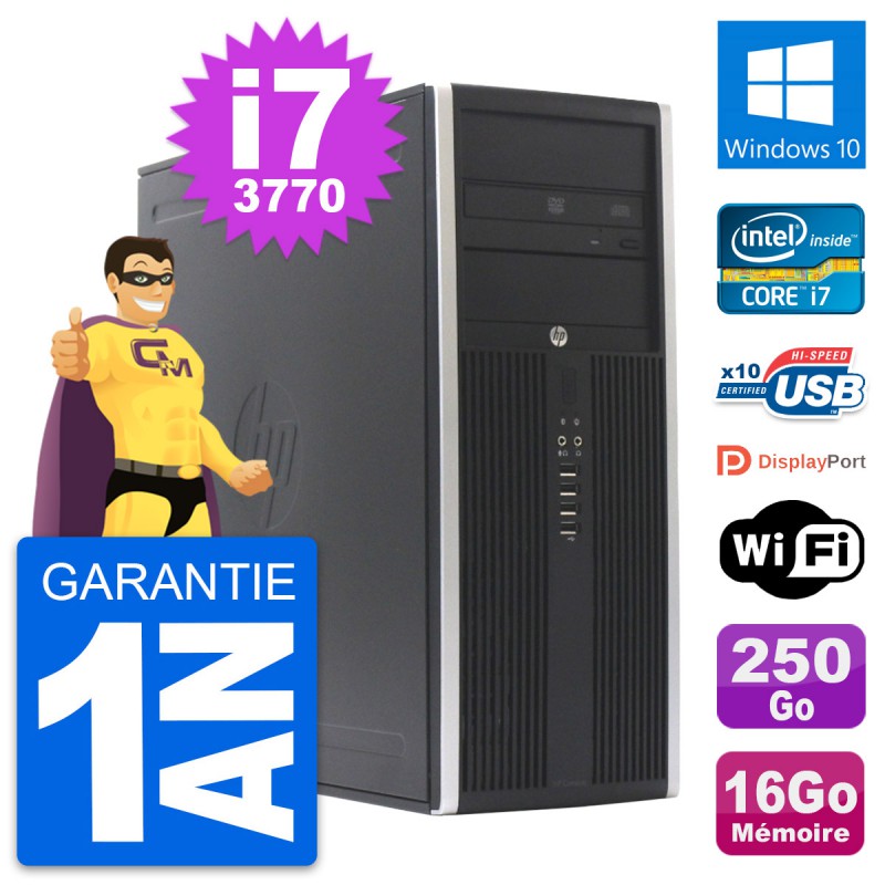 PC Tour HP 8300 Elite - Intel Core i7-3770 3.4 Ghz (8 Mo) - 16 Go DDR3 - Disque Dur 3,5" 250 Go - Graveur DVD - Clef Wifi USB - Windows 10 - Garantie 1 an.