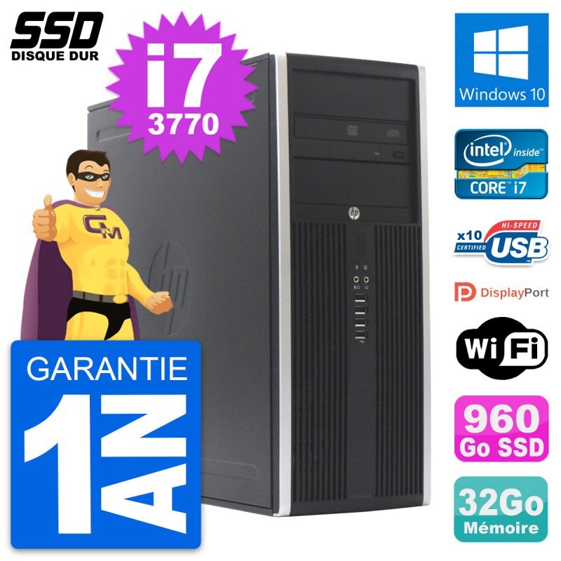 PC Tour HP 8300 Elite - Intel Core i7-3770 3.4 Ghz (8 Mo) - 32 Go DDR3 - Disque Dur SSD 960 Go - Graveur DVD - Clef Wifi USB - Windows 10 - Garantie 1 an.