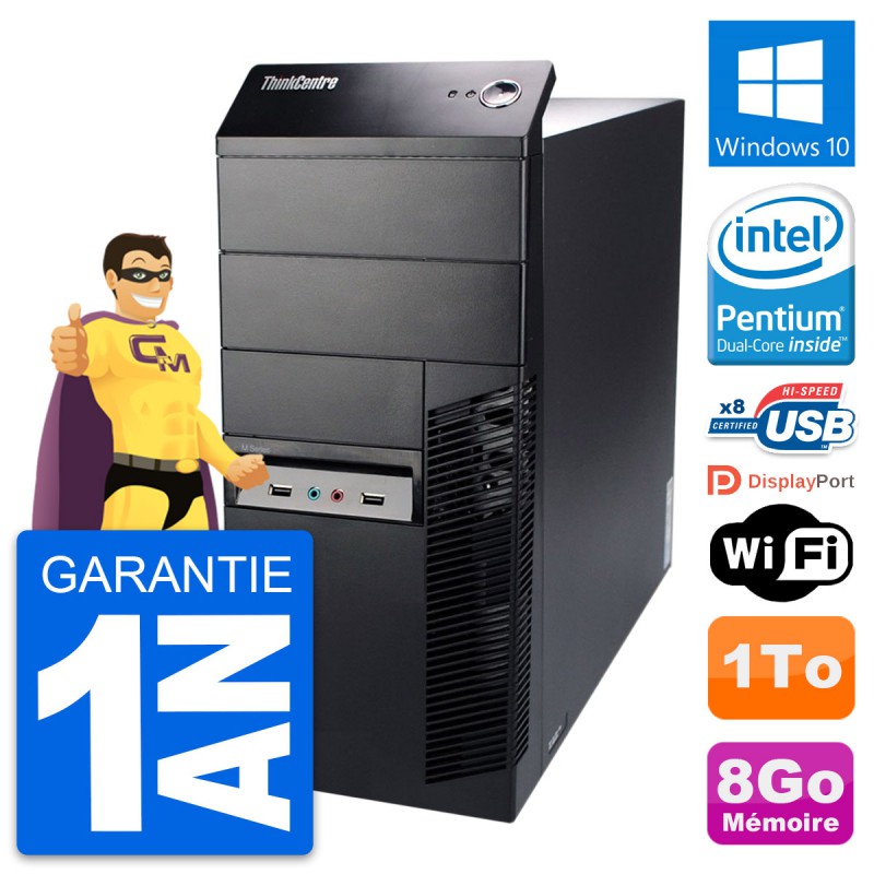 PC Tour Lenovo ThinkCentre M91p - Intel Pentium G630 2.7 Ghz (3 Mo) - 8 Go DDR3 - Disque Dur 3,5" 1 To - Clef Wifi USB - Windows 10 - Garantie 1 an.