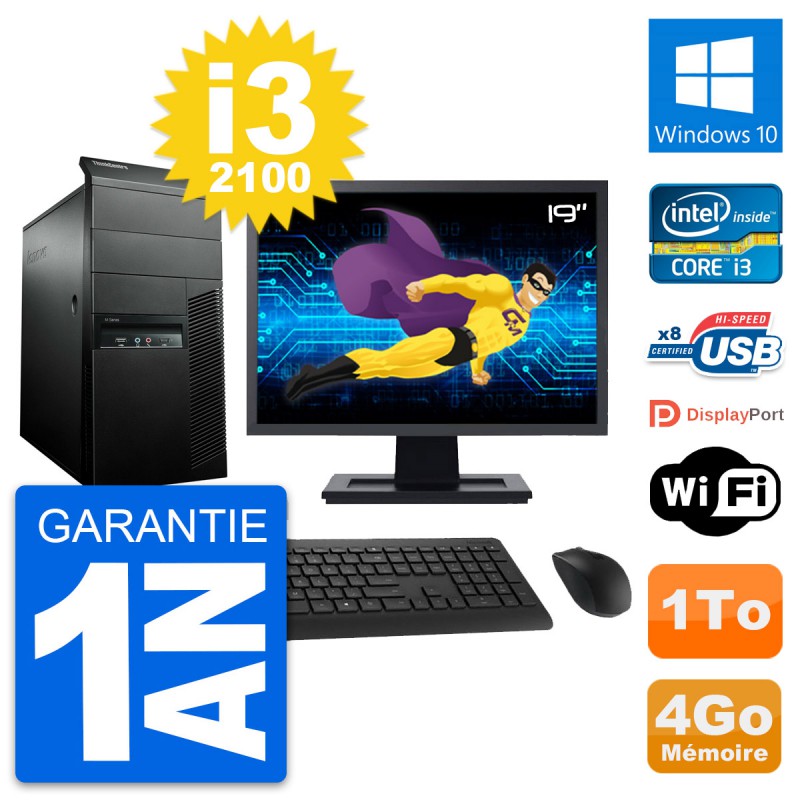 PC Tour Lenovo ThinkCentre M91p - Intel Core i3-2120 3.1 Ghz (3 Mo) - 4 Go DDR3 - Disque Dur 3,5" 1 To - Clef Wifi USB - Windows 10 - Livré avec Ecran 19" + clavier + souris (Marques et modèles variables) - Garantie 1 an.