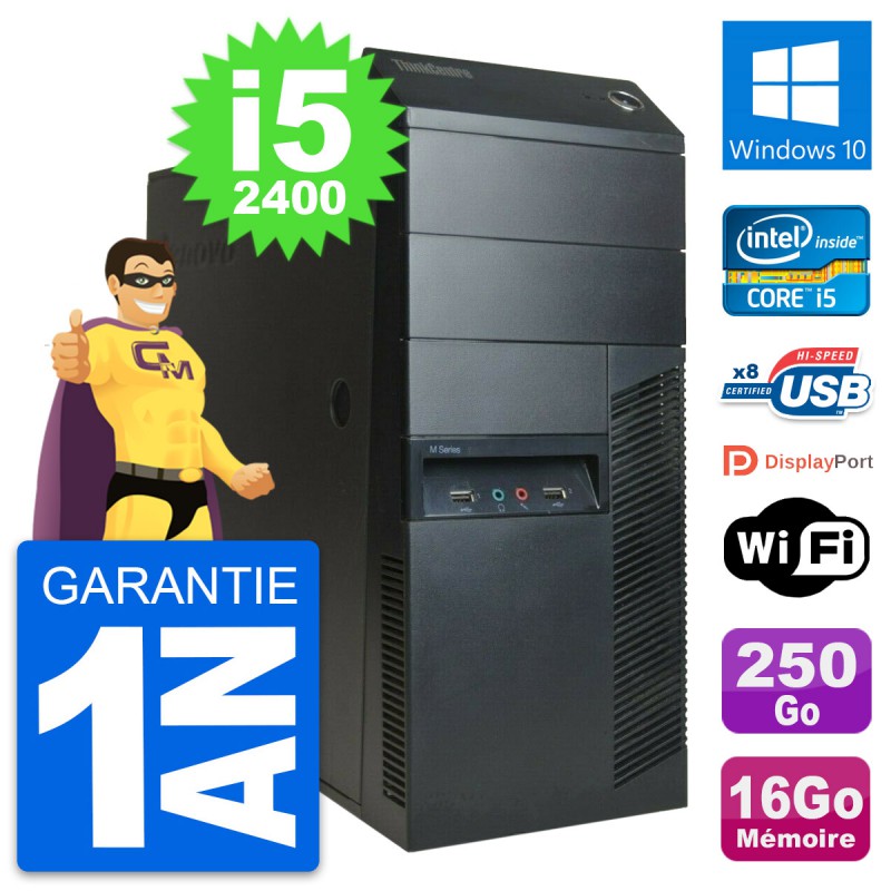 PC Tour Lenovo M91p Intel Core i5-2400 RAM 16Go Disque Dur 250Go Windows 10 Wifi