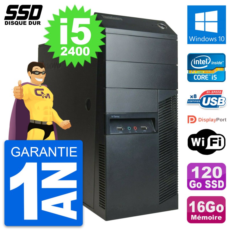 PC Tour Lenovo ThinkCentre M91p - Intel Core i5-2400 3.1 Ghz (6 Mo) - 16 Go DDR3 - Disque Dur SSD 120 Go - Clef Wifi USB - Windows 10 - Garantie 1 an.